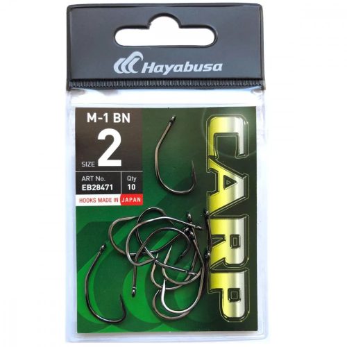 A Hayabusa az M-1 horgot ponty horgászatához fejlesztette ki. Ez jelenleg a legnagyobb darabszámban eladott HAYABUSA horog kínálatunkban. Népszerűsége nem véletlen, horog tökéletesen megfelel a hajszálelőkés horgászathoz, a hosszabb szárának köszönhetően akár dupla csalit is használhatunk. A horog matt szürke színe nem kelt csillogó hatást, így az óvatos halakban sem kelt gyanút. A Hayabusa cég által kifejlesztett egyedülálló gyártási technológiának köszönhetően a horog hegye az extrém igénybevételeknek is ellenáll, csökkentett keresztmetszetének köszönhetően pedig a csontos részekbe is könnyedén behatol. Kialakítása miatt bármilyen előkezsinórhoz kiválóan alkalmazható, akár lágy, fonott, monofil, fluorocarbon vagy merev bevonatolt előkékhez. A horog kovácsolt, szénacél ezért óriási erőtartalékkal rendelkezik. Egyedi kialakításának köszönhetően minden helyzetben tökéletesen akad, és tart a megakasztott hal szájában. Használhatjuk sűllyedő,illetve lebegő csalikhoz is.