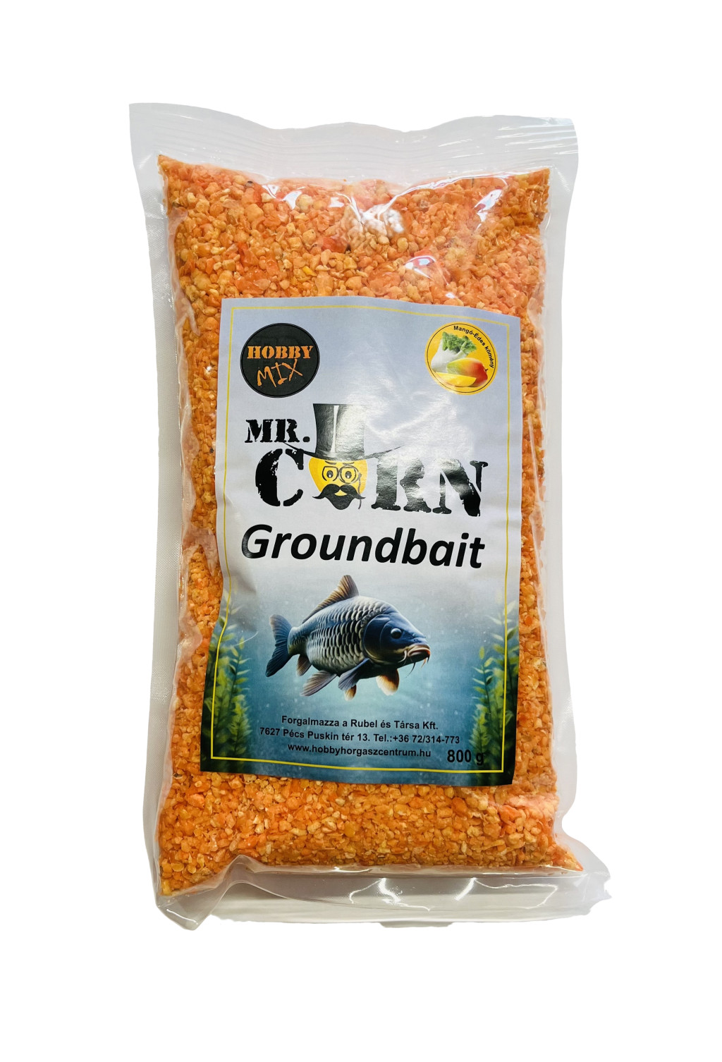 A Hobby Mix Mr. Corn mangó-édes kömény ízesítésű etetőanyaga igazi különlegesség a pontyhorgászok számára. A főtt kukoricából előállított, nagy szemcsés keverék nemcsak táplálékul szolgál, hanem hosszan tartó csalogatóhatást is biztosít.