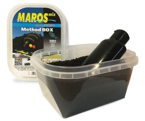 A Maros Method Pellet Box 500 gramm micropelletet és 100 A prémium minőségű halibut pelletnek és rendkívül tömény aromának köszönhetően az egyik legfogósabb pontyos etetőanyagnak számít a Method Box.  Egy éven keresztül, számos vízen bizonyította fogósságát olyan körülmények között is, amikor a legtöbb etetőanyag és csali kudarcot vallott. 500+100 grammos kiszerelésben kapható. A Method Box-ban található aroma... Minden Method Box tartalmaz egy deciliter Maros Mix Extra Aktivátort, ami nem más, mint egy ízletes, tömény aroma. Különleges alapanyagának köszönhetően, oldódás közben ez az adalék, horizontálisan a fenéken terjed. Ennek oka, hogy a pontyfélék elsősorban a fenék közelében táplálkoznak, az aktivátor segítségével pedig sokkal hamarabb rátalálnak az etetésre.gramm locsolószirupot tartalmaz.