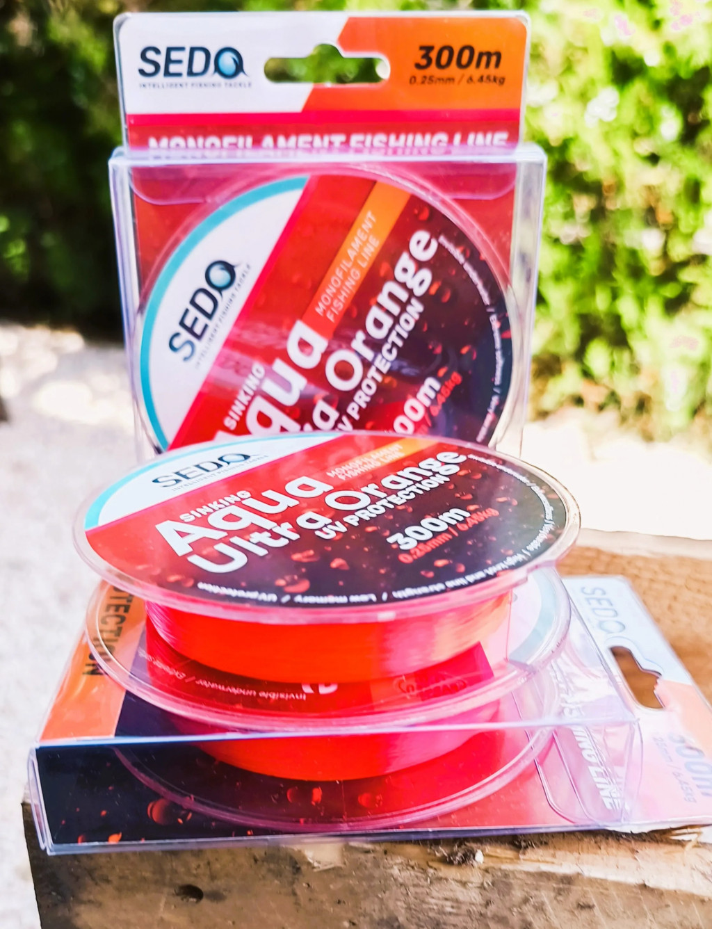 SEDO Aqua zsinórok a legfejlettebb technologiával készültek Japán CoPolymer alapanyagból legmagasabb fokú igénybevételhez a horgászat minden területén. Az Ultra  Orange színt bármikor és bármilyen körülmények között jól látjuk, dobásnál, fárasztásnál napos vagy borult időben illetve éjszakai fárasztásoknál minimális fénynél is! Zsinórnak süllyedő anyaga van , becsapódás  után könnyű megfeszíteni. A SEDO Aqua zsinórok nagyon lágyak és könnyű kezelni illetve csomót kötni, úgy hogy a kötés utolsó mozzanatában nem ég meg a zsinór és sértetlen marad a csomó összehúzásánál. Hatalmas és extrém szakító szilárdság jellemzi csomónál és nélküle is. Szuper alacsony memoriája nem hagyja hogy bármilyen külső behatás miatt  sérülés keletkezzen a zsinóron használat közben Bevágás pillanatában azonnali kontaktunk van a hallal, erős kirohanásoknál kontrolálja a hal védekezését. A gyártási technológia utolsó lépése egy UV Védelemmel ellátott bevonat  mely megóvja a zsinórt a napsütéstől, és különböző természeti hatásoktól ezért nem következik be használat közben egy hirtelen minőségromlás és használhatatlanság, ezért egy minőségben tartós zsinórt vehetünk kézbe.