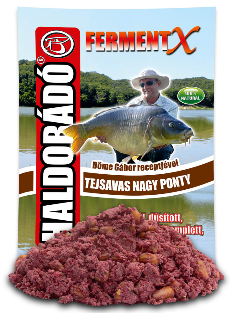 Abszolút újdonságnak számít a Haldorádó palettáján megjelenő FermentX termékcsalád, valamint a hozzá kapcsolódó adalékanyagok. Ezek nem mások, mint erjesztett etetőanyag és magkeverékek. A FermetX termékek 60 nap fermentálás után kerülnek forgalomba. A speciális tartályokban a készítés során úgy érlelődik a keverék, mint a legjobb borok. Garantáltan 100%-ig természetes és nem tartalmaz tartósítószert. Hatféle FermentX etetőanyag van a repertoárban: Tejsavas Betainos, Tejsavas Ananász, Tejsavas Édes Fűszeres, Tejsavas Nagy Ponty, Tejsavas Nagy Amur és Tejsavas Mézes Pálinka kerül forgalomba. A FermentX termékcsalád óriási előnye, hogy nem lehet elrontani a bekeverését, ugyanis a vevő egy komplett, kész keveréket kap, amellyel semmi dolga, csak kosárba kell gyúrni és bedobni, ezért szükségtelen vizet adni hozzá. A csaliról is gondoskodtunk, mert a keverékben található búza- és kukoricaszemek a legjobb csalik, amelyeket horogra tűzve vagy hajszálelőkén felkínálva vethetünk be. Ajánljuk hozzá a Tejsavas magkeverékeinket, akár etetéshez, akár csalizáshoz!