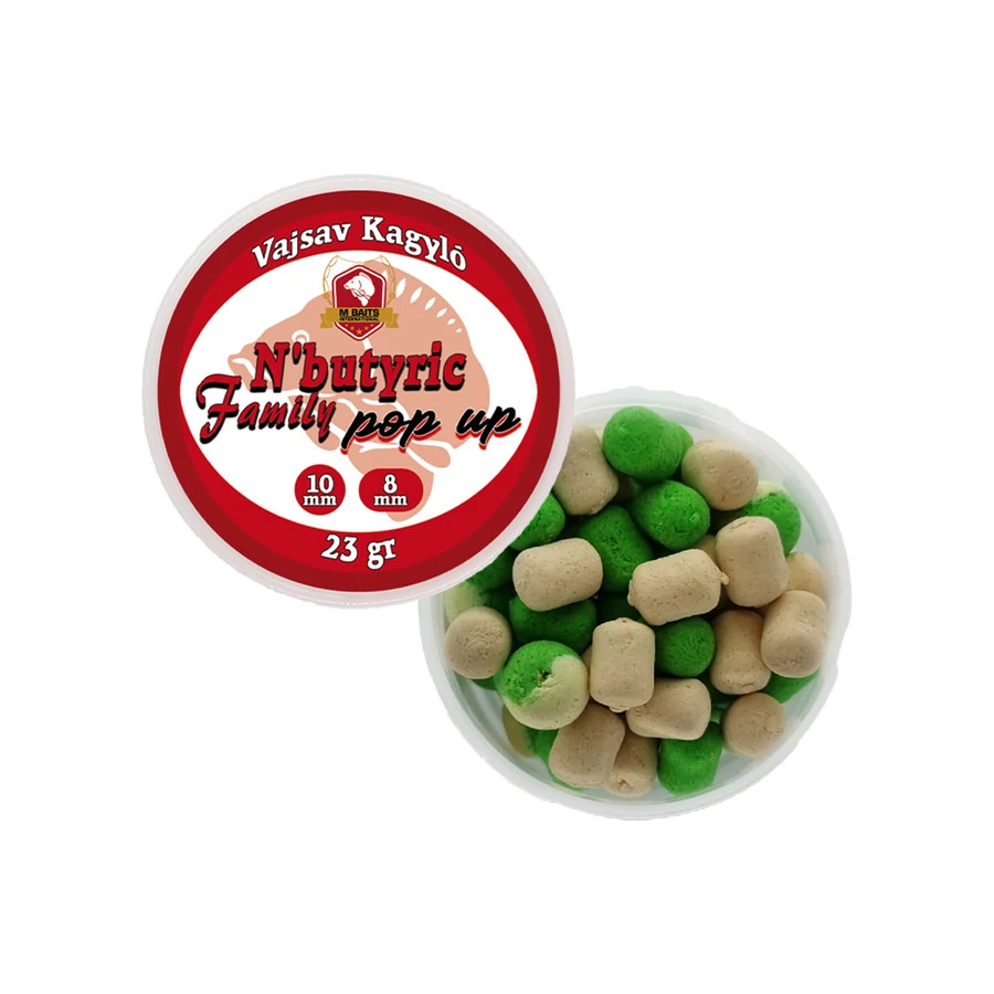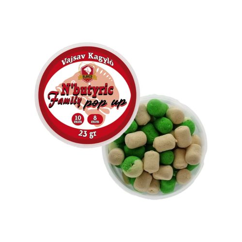 Sokan a felmelegedő vízben alkalmazzák a fermentált csalikat, de az elmúlt években kiderült, hogy ezek az erős és intenzív aromájú termékek egész évben vonzzák a kis és nagytestű halakat. Az N’Butyric family pop up családban a natúr igazai vajsav mellet édes, fűszeres és büdös csalikat is találunk. A kis kiszerelésű dobozokban hordó és gömb formájú csali található 6-8 vagy 8-10 méretben, mely inkább a könnyűszerelékes horgászok állandó társa. A nagy kiszerelésben a nagytestű pontyok horgászainak 12-18mm méretben készítettük el.